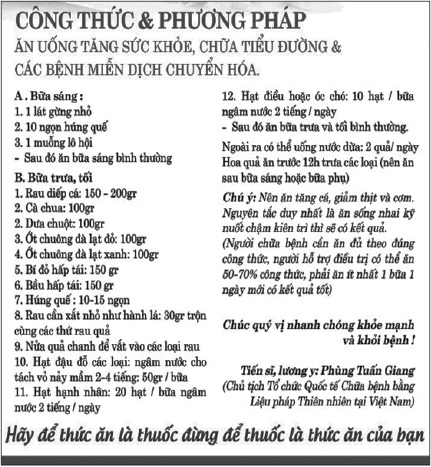 Dưới đây là toàn bộ công thức và phương pháp ăn uống tăng sức khỏe, chữa tiểu đường và các bệnh miễn dịch chuyển hóa từ những nghiên cứu cụ thể của TS.Giang: